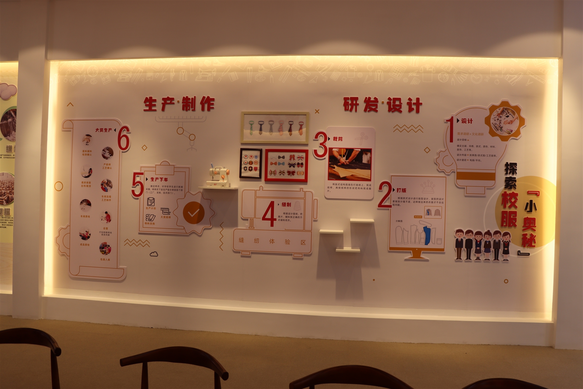 科普館是以校服與學(xué)校教育相結合的科普宣傳基地,在這里可以認識服裝面料的來(lái)源、種類(lèi),學(xué)習不同時(shí)代、不同款式傳統經(jīng)典服飾的特點(diǎn),更能深刻了解一件校服的制作過(guò)程,該展區同時(shí)設置了DIY縫紉體驗區,可以體驗裁剪的樂(lè )趣。