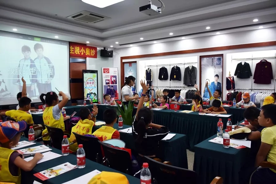 隨后,小記者們來(lái)到新希望學(xué)生裝生產(chǎn)企業(yè)百裕集團營(yíng)銷(xiāo)中心,齊聚服裝展示廳共同深入探討學(xué)生裝知識。會(huì )上,小記者們共同觀(guān)看了“學(xué)生裝生產(chǎn)流程視頻”,并回顧往年“新希望”學(xué)生裝款式等內容。