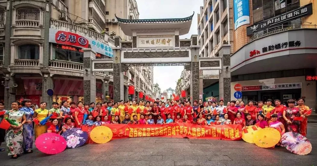 為慶祝新中國成立70周年,配合全球(中國)旗袍總會(huì )發(fā)起的“百城千街萬(wàn)人旗袍秀”暨“創(chuàng )吉尼斯世界紀錄活動(dòng)”,向全世界展示中華傳統文化和東方女性之美,梧州市旗袍協(xié)會(huì )、梧州市華服文化促進(jìn)會(huì )、梧州市老年開(kāi)放大學(xué)藝術(shù)團在梧州市婦聯(lián)的指導下,在廣西百裕集團的冠名支持下,于10月7日上午9時(shí)走進(jìn)騎樓城,開(kāi)展“百城千街萬(wàn)人旗袍秀”暨“創(chuàng )吉尼斯世界紀錄”梧州站展演活動(dòng)。
