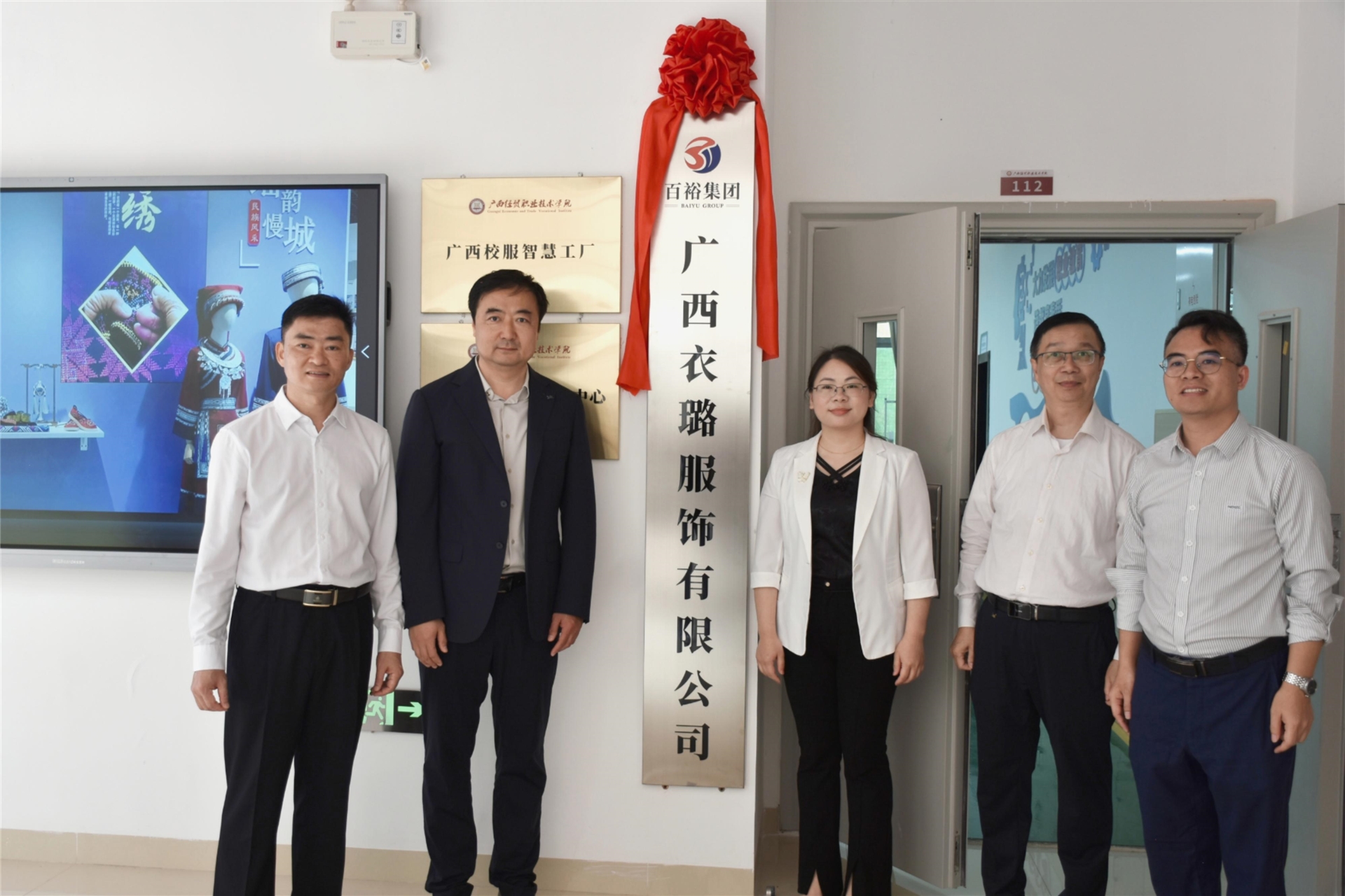 中國紡織服裝教育學(xué)會(huì )會(huì )長(cháng)紀曉峰、廣西經(jīng)貿職業(yè)技術(shù)學(xué)院校長(cháng)羅生芳、副校長(cháng)林震、藝術(shù)設計與建筑學(xué)院副院長(cháng)蔣衛軍與百裕集團市場(chǎng)總監曾凱蘭共同為產(chǎn)業(yè)學(xué)院揭牌,現場(chǎng)掌聲雷動(dòng),標志著(zhù)雙方在產(chǎn)教融合領(lǐng)域邁出了具有里程碑意義的一步。