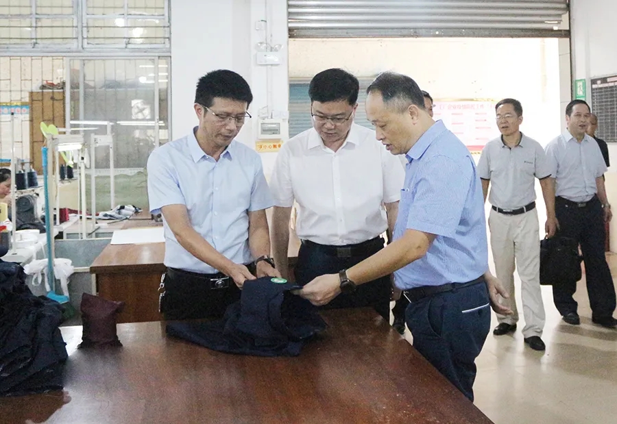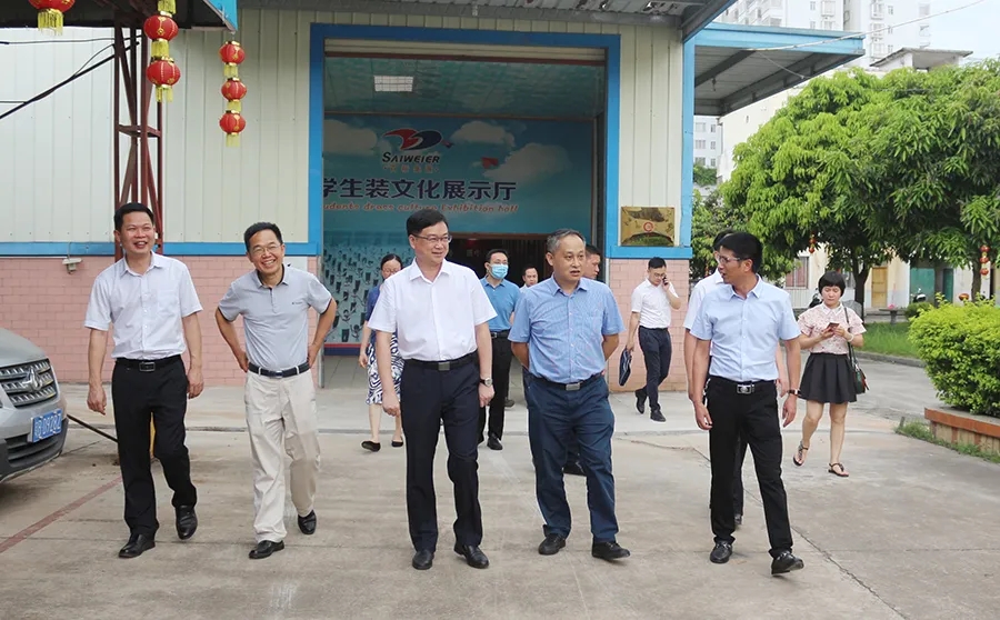 梁藝光副廳長(cháng)一行人先后參觀(guān)了校服文化展示中心、服裝生產(chǎn)車(chē)間,期間曾晏來(lái)總經(jīng)理向梁藝光副廳長(cháng)詳細介紹了公司疫情防控工作的落實(shí)情況,及復工復產(chǎn)、公司經(jīng)營(yíng)發(fā)展的情況,表示在疫情期間一定繼續做好防控措施,保障員工健康安全,確保企業(yè)生產(chǎn)經(jīng)營(yíng)有序開(kāi)展。