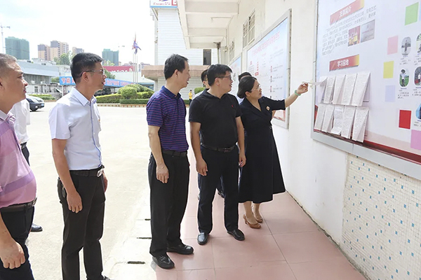 6月23日,廣西自治區黨委組織部組織六處處長(cháng)梁燕海一行到百裕實(shí)業(yè)開(kāi)展兩新組織黨建工作調研,梧州市委組織部副部長(cháng)黃杰梅,岑溪市委常委、組織部部長(cháng)蔣新軍等陪同調研。