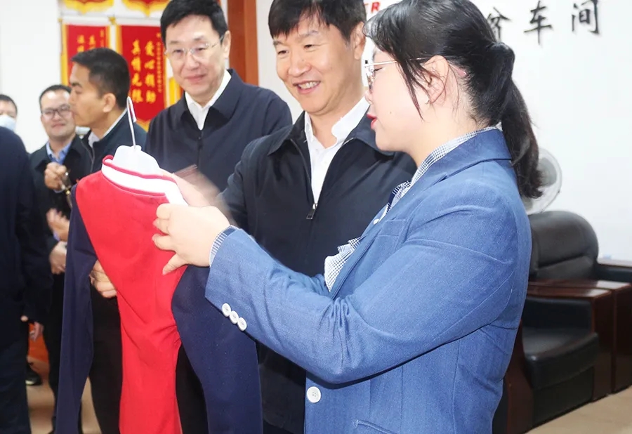 在參觀(guān)展示廳的過(guò)程中,市場(chǎng)總監曾凱蘭向領(lǐng)導們詳細介紹了百裕校園服飾特點(diǎn)。環(huán)江是毛南、壯、漢、苗、瑤、水、仫佬族、侗、布依等少數民族集中地,是全國惟一的毛南族自治縣,擁有絢爛多彩的少數民族文化背景,百裕集團在服務(wù)當地學(xué)校學(xué)子的同時(shí),充分保留民族文化特色,將文化元素融入到學(xué)生服飾當中,傳承民族文化。對于此舉,劉小明給予了認可與極大的鼓勵。