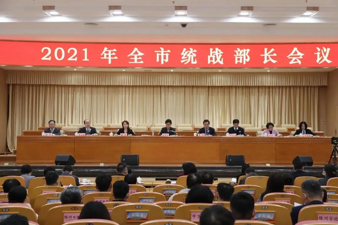 3月5日,梧州市統戰部長(cháng)會(huì )議在梧州市聯(lián)合辦公大樓召開(kāi),學(xué)習貫徹全國、全區統戰部長(cháng)會(huì )議精神,回顧總結2020年全市統戰工作,部署今年工作任務(wù)。市委常委、統戰部部長(cháng)鐘碧珍出席會(huì )議并作工作部署。