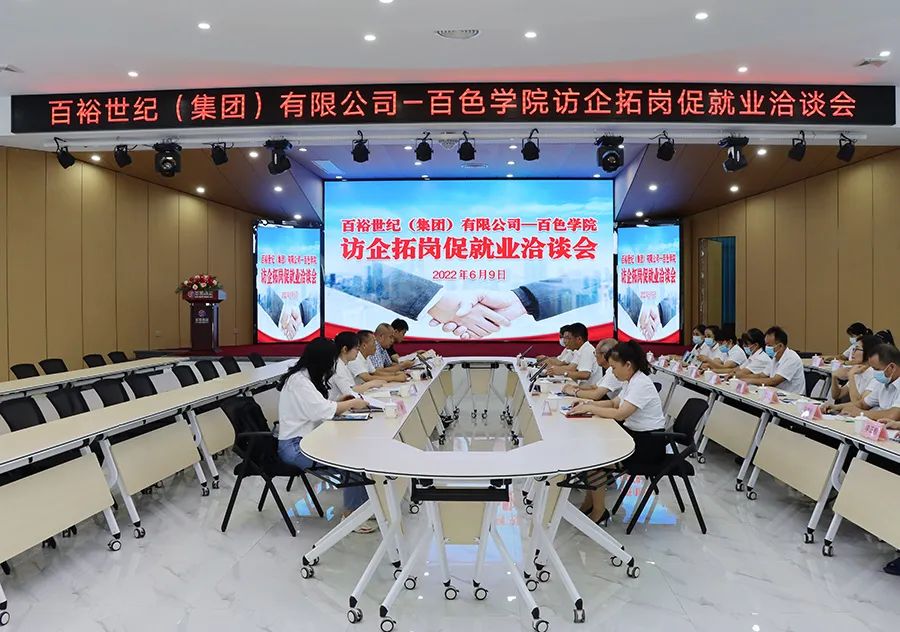 為貫徹落實(shí)教育部“高校書(shū)記校長(cháng)訪(fǎng)企拓崗促就業(yè)”專(zhuān)項行動(dòng),拓展畢業(yè)生就業(yè)渠道,全面深化校企合作,6月9日下午,百色學(xué)院學(xué)校黨委副書(shū)記徐魁峰率隊蒞臨百裕集團考察調研,并就“訪(fǎng)企拓崗促就業(yè)”進(jìn)行洽談。