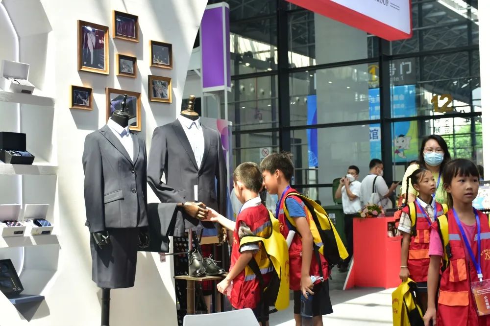 服飾展區吸引了小記者團的關(guān)注與了解,對服裝的制作、面料、配飾、洗滌護理等知識充滿(mǎn)好奇心并爭相提問(wèn),在百裕集團員工現場(chǎng)耐心解說(shuō)下,小記者們收獲滿(mǎn)滿(mǎn)!