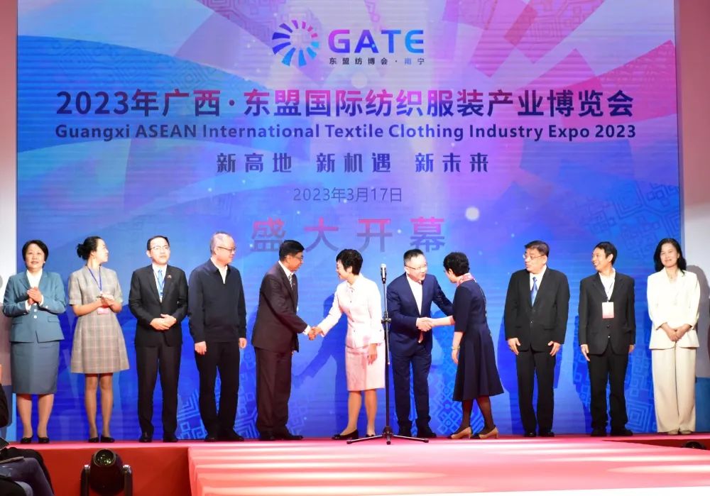本次東盟紡博會(huì )以“新高地 新機遇 新未來(lái)”為主題,由中國—東盟博覽會(huì )秘書(shū)處、中國紡織品進(jìn)出口商會(huì )、中國國際商會(huì )廣西商會(huì )、中國機械國際合作股份有限公司、廣西國際博覽集團有限公司聯(lián)合主辦。廣西壯族自治區人大常委會(huì )副主任楊靜華、中國紡織工業(yè)聯(lián)合會(huì )副會(huì )長(cháng)楊兆華出席開(kāi)幕式并致辭,中國國際貿易促進(jìn)委員會(huì )廣西壯族自治區分會(huì )(以下簡(jiǎn)稱(chēng)“廣西貿促會(huì )”)副會(huì )長(cháng)伍娟作廣西紡織服裝產(chǎn)業(yè)招商推介。廣西國際博覽集團總經(jīng)理李衛國主持開(kāi)幕式。