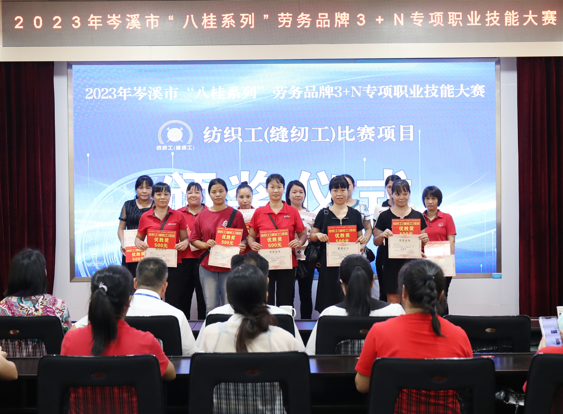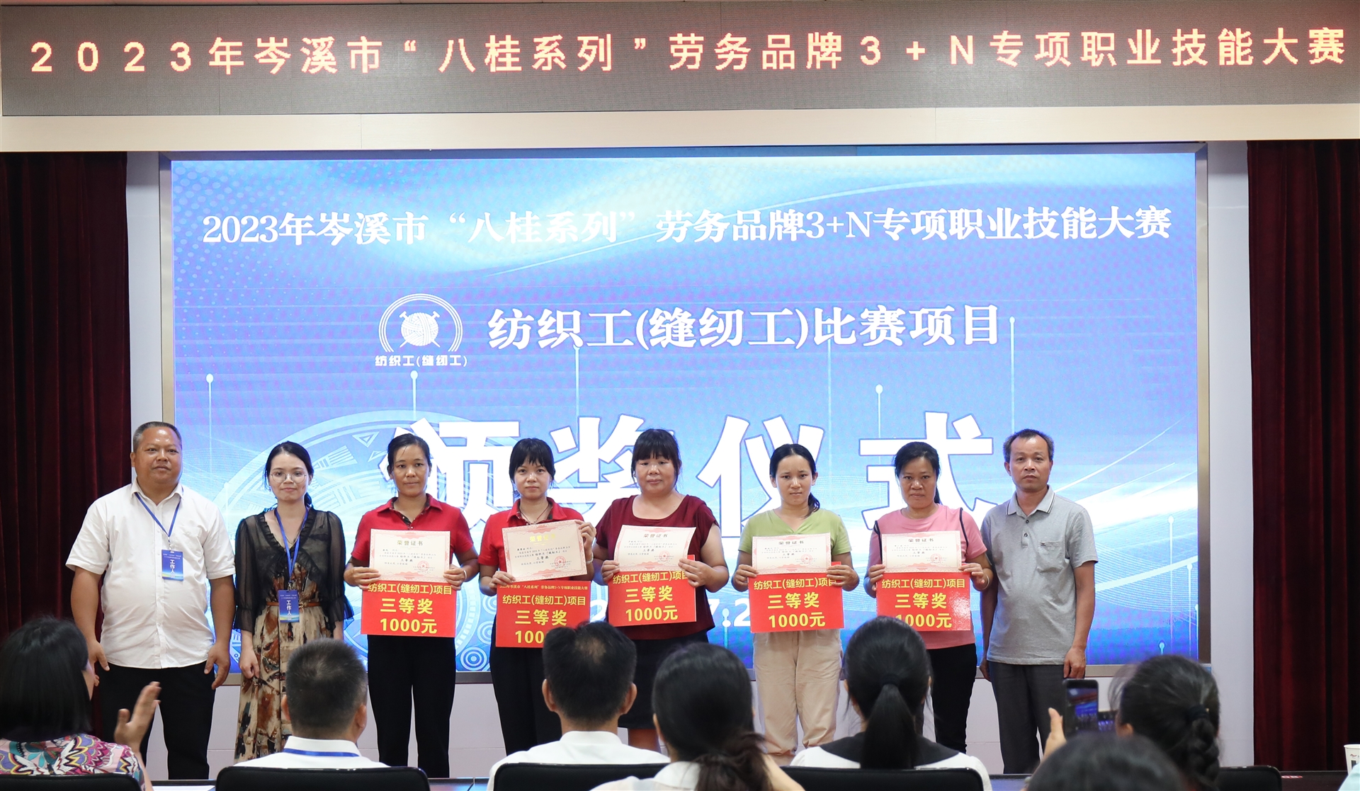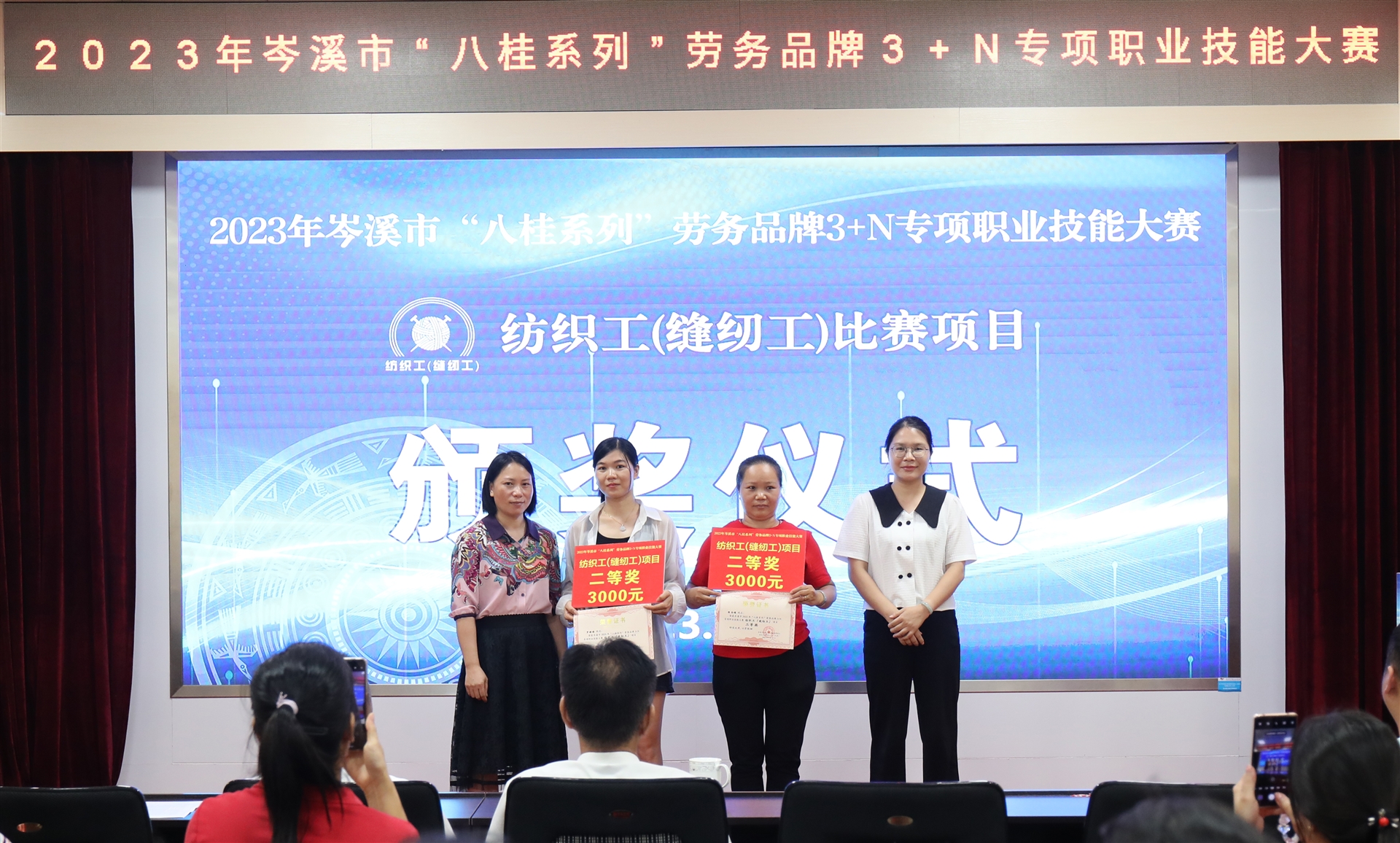 百裕世紀 (集團)有限公司線(xiàn)下車(chē)間職工超麗榮獲紡織工 (縫工)比賽項目的一等獎;羅婷婷、陳杏娟2位職工榮獲二等獎;梁鳳、羅獻鳳、覃廣英、莫清云、廖芬藝5位職工榮獲三等獎;陳海蘭、陳志平、張紅潔等12名職工榮獲優(yōu)勝獎。