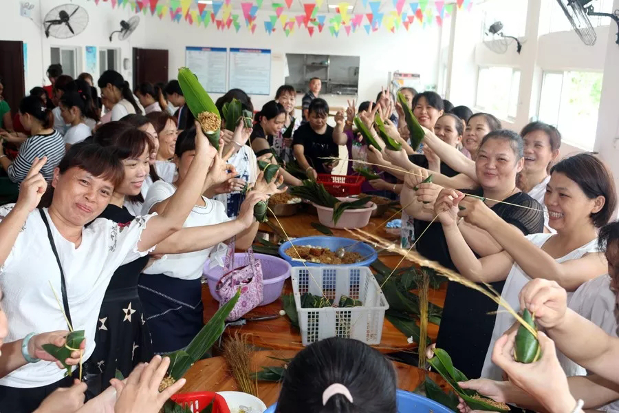 員工們歡聚一堂,包粽子,話(huà)家常,感受別樣的端午風(fēng)味。經(jīng)過(guò)大家的辛勤勞作,幾百個(gè)形態(tài)各異的粽子出爐了??諝庵猩l(fā)著(zhù)清爽甘醇的氣息,香噴噴的粽子味道飄滿(mǎn)整個(gè)食堂,大家迫不及待品嘗起來(lái)。