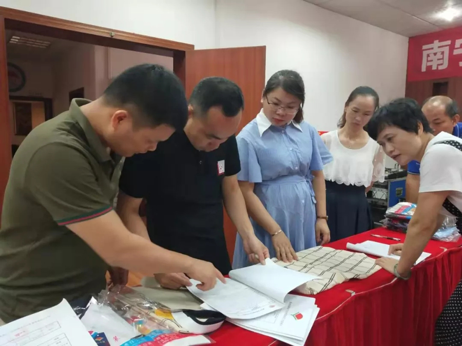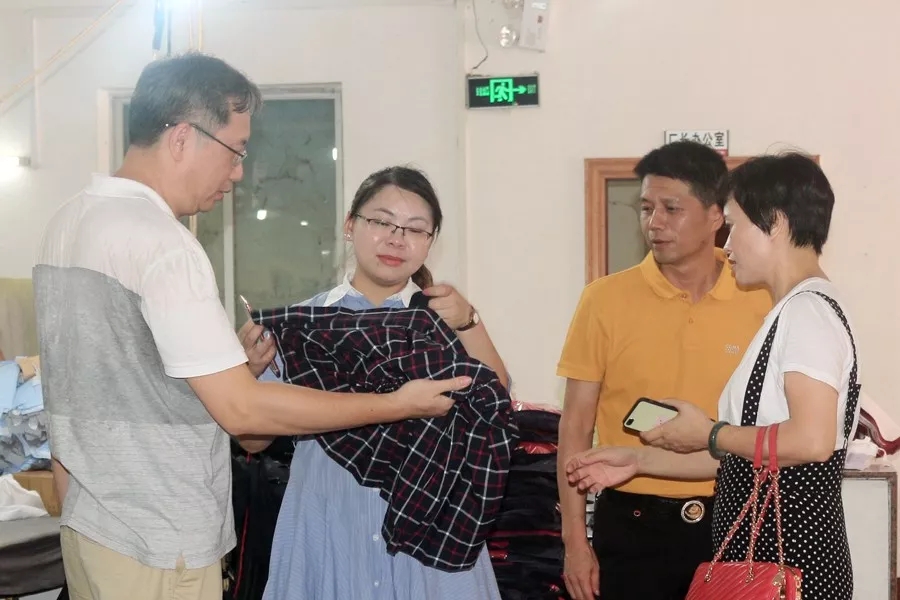 7月4日,南寧市新希望教育用品有限責任公司總經(jīng)理勞豪一行4人到百裕實(shí)業(yè)生產(chǎn)基地,了解學(xué)生裝庫存情況以及監督產(chǎn)品質(zhì)量。百裕集團董事長(cháng)許曲煌、生產(chǎn)中心總經(jīng)理曾晏來(lái)等相關(guān)公司人員陪同考察。