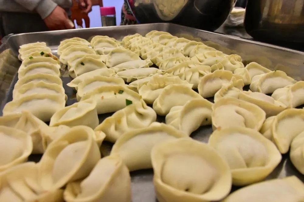 新春伊始,大家齊聚餐廳各顯神通,放餡、捏皮,完整連貫。一會(huì )兒功夫,一盤(pán)盤(pán)大小勻稱(chēng)、緊實(shí)飽滿(mǎn)、形狀美觀(guān)的餃子整齊地擺上了臺面:月牙狀、元寶狀、柳葉狀等各式各樣的餃子組成了一桌餃子“全家?!?,堪比精美花朵百花齊放。