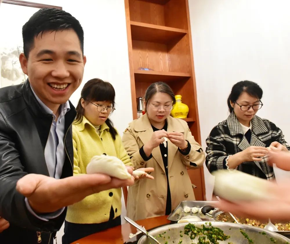 餐廳里歡聲笑語(yǔ),熱鬧非凡,大家邊包餃子邊拉家常,相互觀(guān)摩學(xué)習,加深了彼此的交流,拉近了彼此的距離,增進(jìn)了彼此的感情。