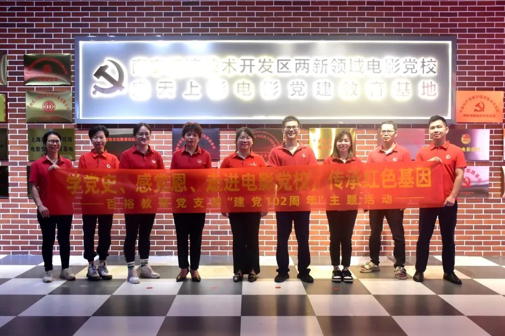 百年風(fēng)雨紅旗更艷,萬(wàn)里江天歲月如歌。為慶祝中國共產(chǎn)黨建黨102周年,進(jìn)一步強化黨員的身份及責任意識,充分發(fā)揮基層黨組織的戰斗堡壘作用,激發(fā)黨員的責任感與使命感,在七一建黨節來(lái)臨之際,6月28日下午,百裕教育黨支部書(shū)記曾凱蘭組織帶領(lǐng)公司黨員職工在南寧經(jīng)濟技術(shù)開(kāi)發(fā)區兩新領(lǐng)域電影黨校開(kāi)展“學(xué)黨史、感黨恩、走進(jìn)電影黨校,傳承紅色基因”建黨102周年主題活動(dòng)。