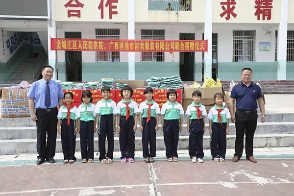 此次活動(dòng),金城江區人民檢察院為五圩鎮中心小學(xué)捐贈共計價(jià)值8000余元的400套學(xué)生文具,百裕集團為五圩鎮中心小學(xué)捐贈共計377套價(jià)值33930元學(xué)生校服。